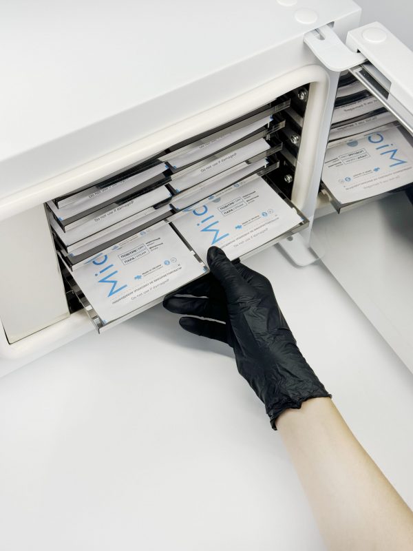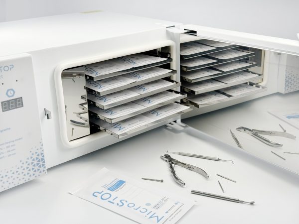 Capacidad para 12 juegos de instrumentos y de 15 bolsas.