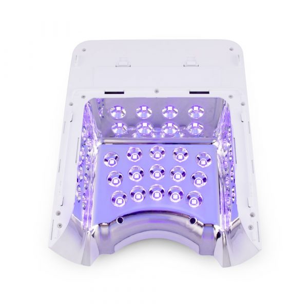 Esta lámpara incorpora la tecnología LED y de batería de ion de litio más avanzada para que los expertos profesionales en uñas puedan utilizarla en cualquier lugar y en cualquier momento. La lámpara incluye 39 luces LED, son híbridos con una longitud de onda impresionante de 365-395nm para curar el esmalte en gel o el gel UV de cualquier marca, incluso incorpora cuatro luces LED diseñadas exclusivamente para curar el pulgar. Estos leds de última generación están alojados en un espacio cónico el cual favorece la polimerización. La características incluyen: